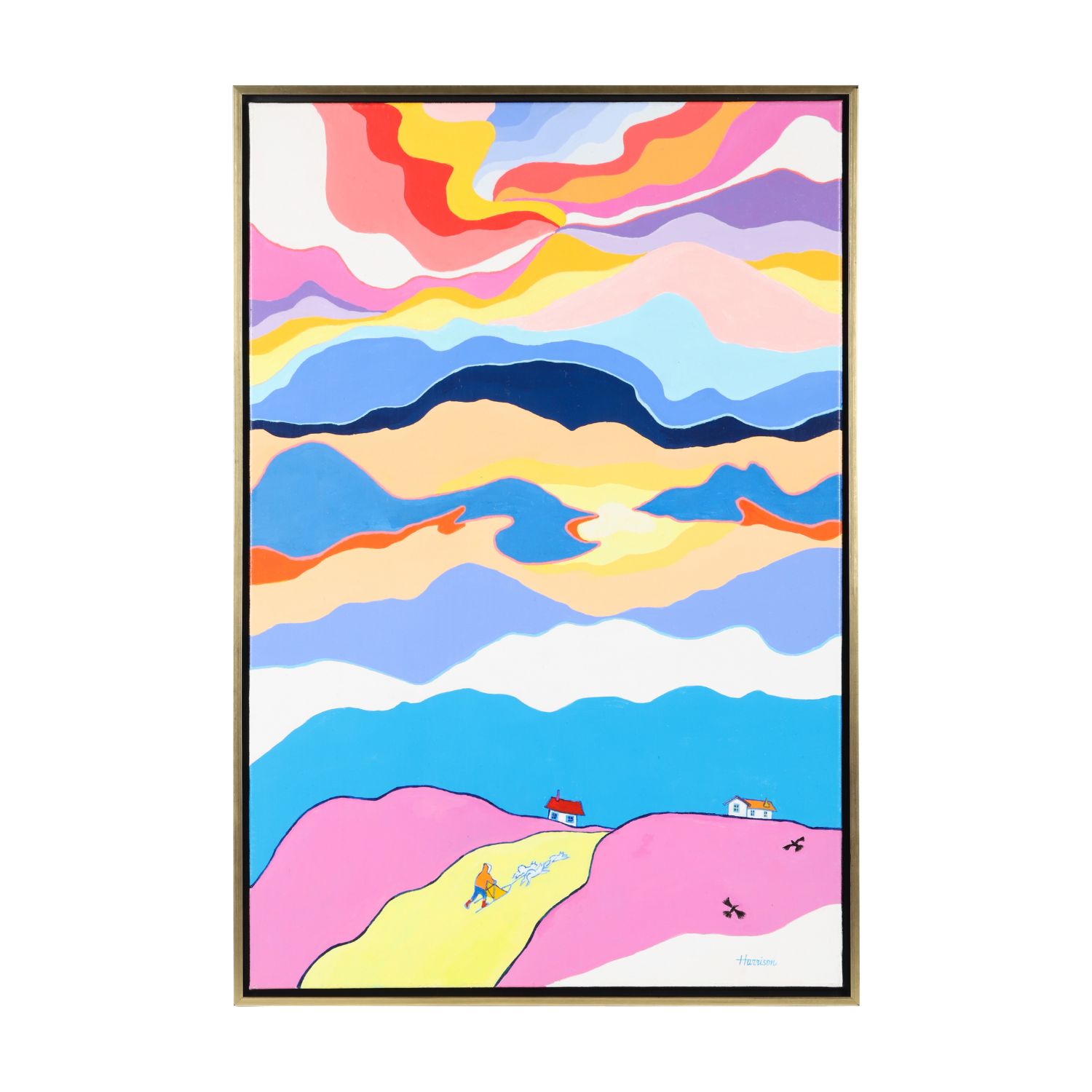 Vivid original painting by Canadian folk artist Ted Harrison (1926-2015), titled Dawson City Evening, encapsulating the spirit of Canada’s North. Estimate: $15,000-$25,000 (Canadian).
